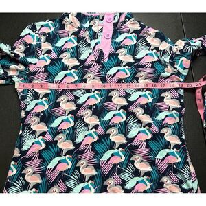 Long sleeve pullover from Crown & Ivy. Fun flamenco print. Lightweight fleece fabric. Buttons at neckline. Size M. Approximate flat lay measurements- Bust: 19.5” across from armpit to armpit. Length: 25”. Gently preowned condition with no tears or stains.