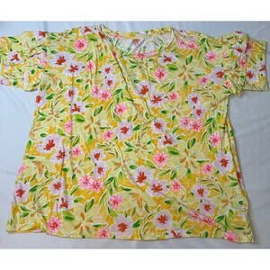 Crown & Ivy Floral Ruffle Short Sleeves Green Yellow Bundle Size XL