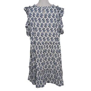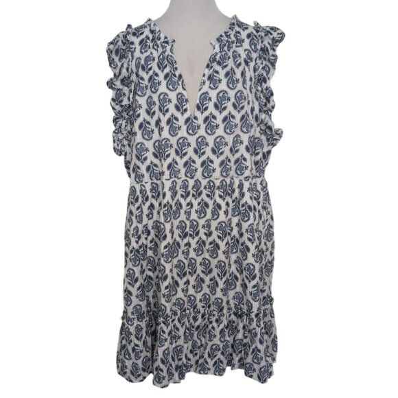 Crown & Ivy Womens 100% Cotton White Blue Floral Flutter Sleeve V Neck Dress Plus Size 3X