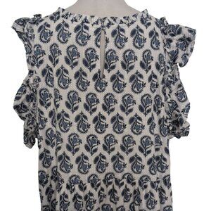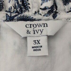 Crown & Ivy Flutter Sleeve Dress Womens Plus Size 3X White Blue Floral V Neck