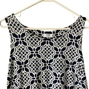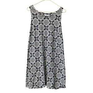 Chic midi dress with bold geometric design. Ideal for versatile styling.
