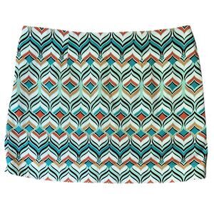Crown & Ivy Geometric Print Multicolor Cyan Golf Skort Size 14