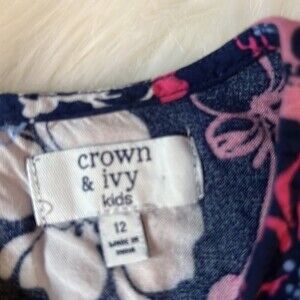 Crown & Ivy Girls Blue Floral Dress W/ Ruffle Sleeves Size 12