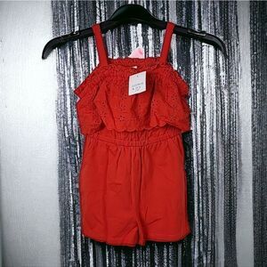 Crown & Ivy Girls Size 5 Red Eyelet Lace Ruffled Knit Romper NWT Summer Clothes