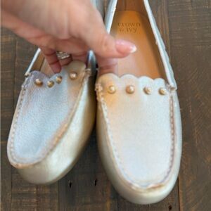 Crown & Ivy Gold Loafers with Pearl Detailing size 7