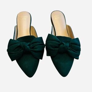 Crown & Ivy Green Bow Mules