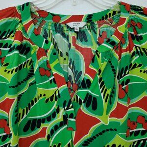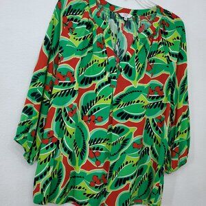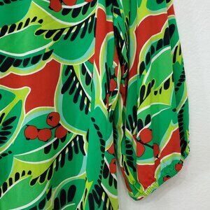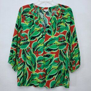 Crown & Ivy Green Floral Frond Tunic Holiday Christmas Women's Blouse Large