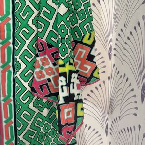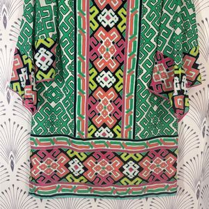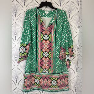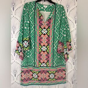 Crown & Ivy Green Pink Geometric Dress boho sleeve Womens size 10 PTP-20 L-38
