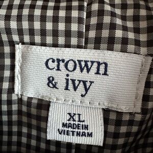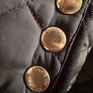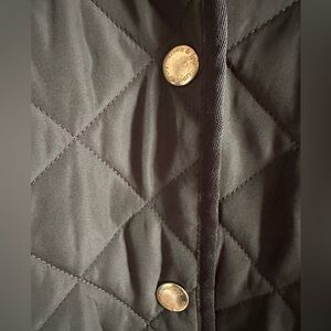 CROWN & IVY QUILTED JACKET. GOLD CUSTOMIZED BUTTONS IN FRONT & o SLEEVES/ BACK SIDE ON THE BAND FOR FITTINGS / GOLD SIDES ZIP POCKETS. ICONIC GINGHAM LINING.