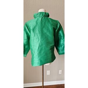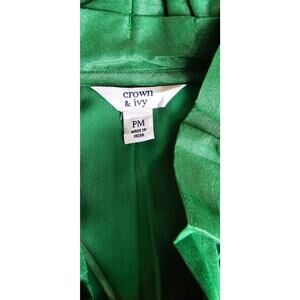 Crown & Ivy Green Shiny Ruffle V-Neck 3/4 Sleeve Holiday Top Size Petite Medium