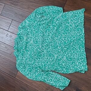 Crown & Ivy Green & White Paisley Print Blouse with Ruffled Collar size XL.