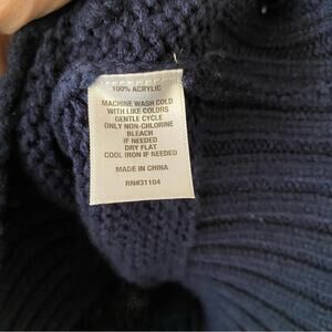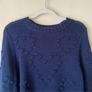 Crown & Ivy | Heart Pom Pom Crewneck Sweater Pullover Cozy Navy Blue Medium