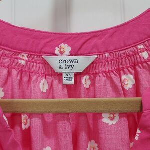 Crown & Ivy Hot Pink Floral Peasant Top, Size Xs, Perfect condition,,Actual Measurements are