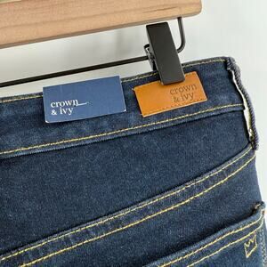 Crown & Ivy Jeans SZ 4 Jaden Wash High Rise Flare Gold Hem Denim NWT Cotton