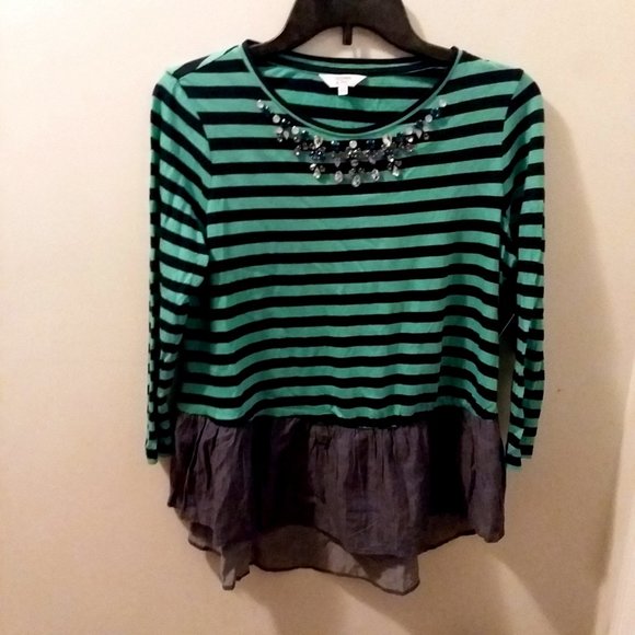 Crown & Ivy Jeweled Stripe Top/with Chambray
