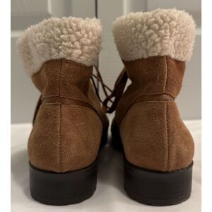 Step out in style with these Crown & Ivy June Boots. The brown boots are perfect for women who want to add a touch of elegance to their wardrobe. The suede upper material paired with faux fur lining material gives the boots a shearling style that is both cozy and fashionable. The low heel height of 1 inch ensures that you can wear the boots for hours without any discomfort. The boots are available in size 8.5 and are perfect for women who want to make a statement.