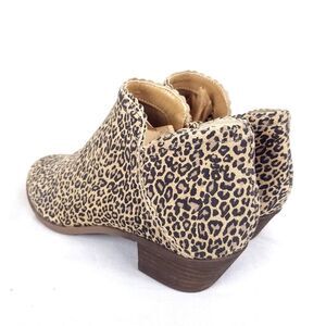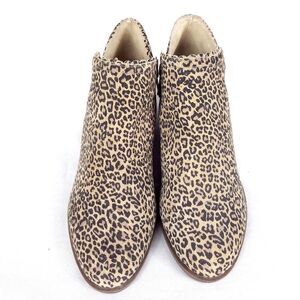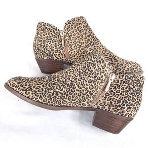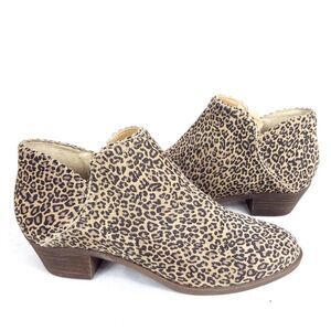 Crown & Ivy Keegan Scallop Leopard Booties Slip On Ankle Boot Tan Leather Size 8