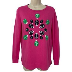 Crown & Ivy Ladybug Sweater Womens Small Pink Animal Print Long Sleeve Tunic S