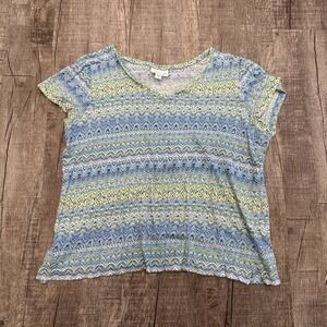 Crown & Ivy Maxi Dress Womens Large Turquoise Tiered Ruffle Neck Pockets Cotton