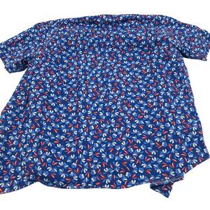 Crown & Ivy Men's Blue Floral Button-Up Shirt Classic Fit sz Large Short Sleeve