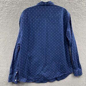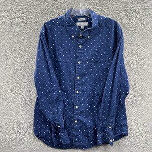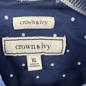 Crown Ivy Mens Top Extra Large Blue White Polka Dot Button Front Shirt Stretch