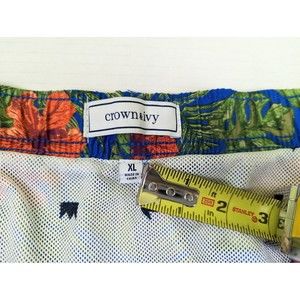 Crown & Ivy Mens XL Swim Trunks Blue Green Orange Hawaiian Floral Mesh Lined EUC Excellent Condition, minimal wear, no seen flaws