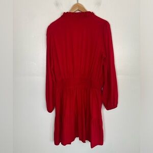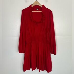Crown & Ivy Midi Dress Size XL Red Long Sleeve Tiered Smocked Waist Ruffle Neck