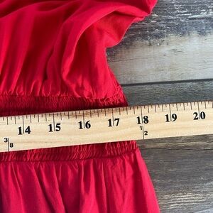 Crown & Ivy Midi Dress. Size XL. Color Red. Long Sleeve. Tiered. Smocked Waist. Ruffle Neck. Measurements added in images. Material content in images. Made in India. used good condition.
