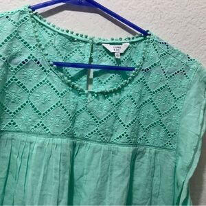 Crown & Ivy Mint Eyelet Ruffle Blouse (XL) NWT