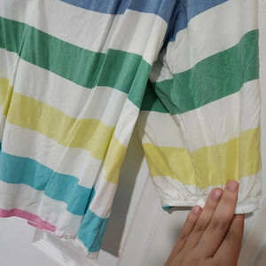 Crown & Ivy Multicolored Striped Peasant Blouse Split Neck in Size 1X