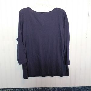 Brand new navy blue top from Crown & Ivy featuring 3/4 length sleeves, crochet lace, and scoop neck in a soft cotton knit.