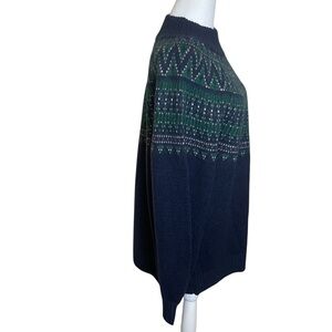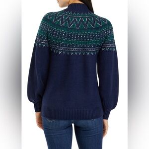 Crown & Ivy Navy Blue Fair Isle Sweater Soft Knit Mock Neck Cozy Warm Casual XL