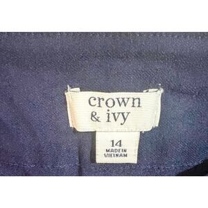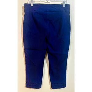 Crown & Ivy Navy Blue Pull-On Crop/Ankle Pants with Crochet Insert Hem Size 14