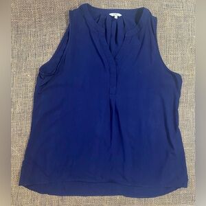 Crown & Ivy Navy Blue Tank Blouse, Size XL, V-neck, 100% Rayon, Pleated Back