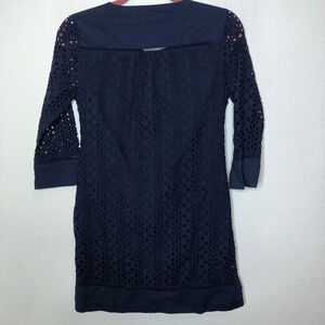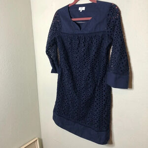 Crown & Ivy Navy Cotton Eyelet Dress Size 4 Petite
