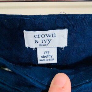 Crown & Ivy Navy Scallop Hem Shorts Women’s Size 12P Classic Summer Casual