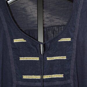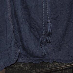 The Crown & Ivy Navy Tank in size 3X is a stylish and comfortable sleeveless top perfect for casual occasions in the summer or spring. Made from 100% cotton knit fabric, this solid blue tank features a V-neckline and wide straps, with tasseled accents adding a unique touch. The pullover closure makes it easy to wear, and its basic style makes it versatile for everyday wear. This plus-size tank from the brand Crown & Ivy is a must-have addition to any woman's wardrobe.