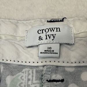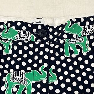 Crown & Ivy Navy & White Polka Dot Shorts with Green Elephants - Size 16