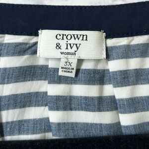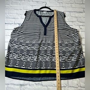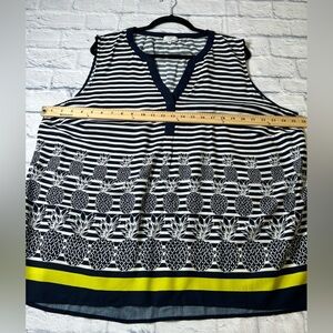 Crown & Ivy Navy and White Striped Blouse with a Pineapple Motif! Size 3X