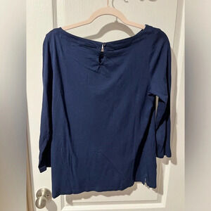 Crown & Ivy Navy blue scoop neck top tie plaid inside neckline design. Sz Large.