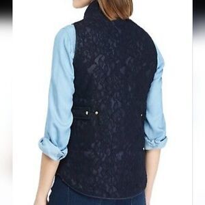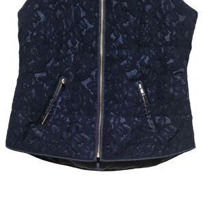 Crown & Ivy Novel Navy Blue Zip Front Lace Puffer Vest Sz Small Petite