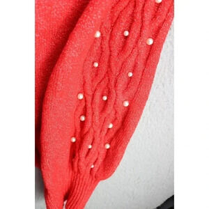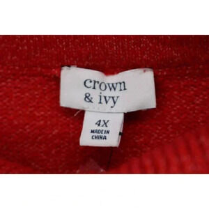 This is a Crown & Ivy Off the Shoulder Red Sweater that has pearl beads down the sleeves. It is a size 4X. It is 97% Polyester and 3% Spandex. Laying flat, the measurements are: Armpit to armpit-29" and the length is 28". It has a lot of stretch. It is new with tags and retails for $74.50. It is very soft and really nice.