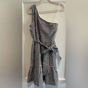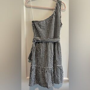 Crown & Ivy One Shoulder Tie Waist Black and White Checked Gingham Dress Size 12