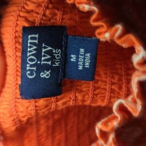 Crown & Ivy Orange Floral Shirred Maxi Dress Tiered Ruffle Girls Size M
