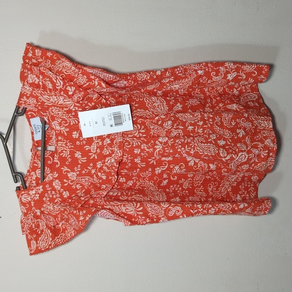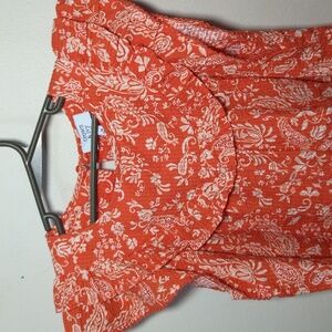 Crown & Ivy Orange + White Floral Ruffle Blouse Cap Sleeves Girls Size M NEW