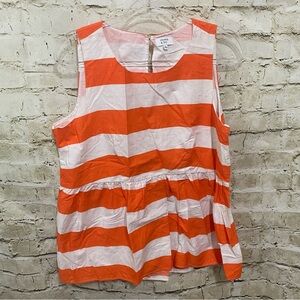 Crown & Ivy Womens Large Orange White Striped Cotton Sleeveless Peplum Top in excellent used condition. No stains, tears or rips.