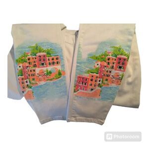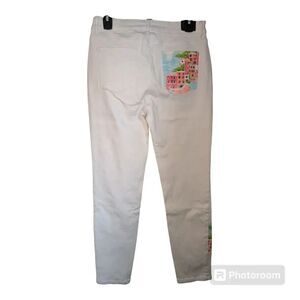Crown Ivy Pants Womens 8 White Tropicalia Pockets Skinny Stretch Jeans Pants NWT