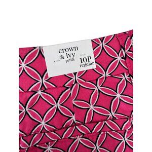 Crown & Ivy Petite 10P Regular Pink Geometric Print Shorts For Women