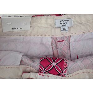 women's shorts, Crown & Ivy, pink shorts, geometric shorts, summer outfit, petite shorts, casual wear, cotton shorts, stylish shorts, women's fashion, breathable fabric, trendy shorts, 10P size
