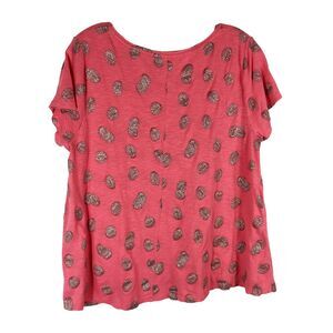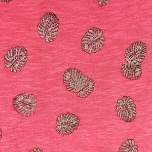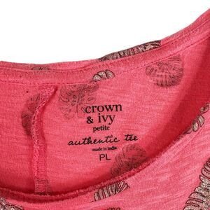 Crown Ivy Petite Large Top Pink Sparkly Monstera Leaf Print Short Sleeve 1354